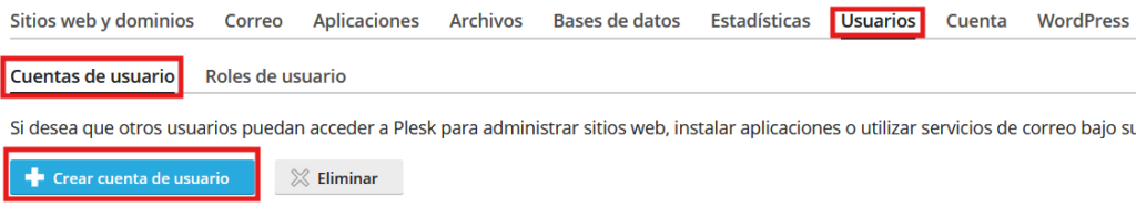 3. Una vez dentro del apartado «Usuarios» y, posteriormente, en el apartado «Cuentas de usuario», pulse sobre «Crear cuenta de usuario».
